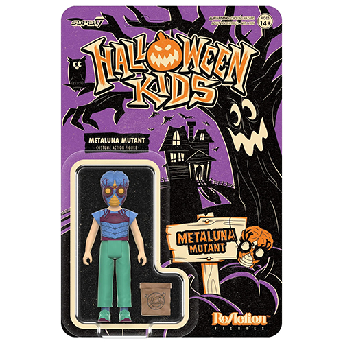 時は70~80年代のアメリカ。ハロウィンでオーソドックスだった"お面と簡易コスチューム"に身を包み「Trick or Treat!!」と街の家々を子供たちが回っていた光景からインスパイアされスーパー7がリアクションシリーズとして生み出したノスタルジー溢れる「ハロウィンキッズ」シリーズ。こちらは、ユニバーサルモンスターの中でも人気の高い宇宙人メタルナ・ミュータントのマスクと簡易コスチュームに身を包んだハロウィンキッズ。