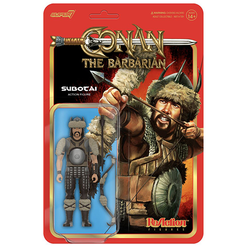 小説を元にコミック化も行われ、シュワルツェネッガーを主演に迎え1982年映像化された『コナン・ザ・グレート』がスーパー7のリアクションフィギュアシリーズに登場!こちらは、魔女に囚われていた盗賊で後のコナンの冒険には欠かせないサボタイ。アーチャーとして有能なサボタイにはアクセサリーとして弓矢が付属!
