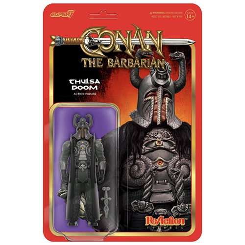 小説を元にコミック化も行われ、シュワルツェネッガーを主演に迎え1982年映像化された『コナン・ザ・グレート』がスーパー7のリアクションフィギュアシリーズに登場!こちらは、平和だった村現れコナンの両親を殺した、鋼の秘密を狙う侵略者タルサ・ドゥーム。印象的なフルバトルアーマーを纏い、蛇の牙のダガーもアクセサリーとして付属。
