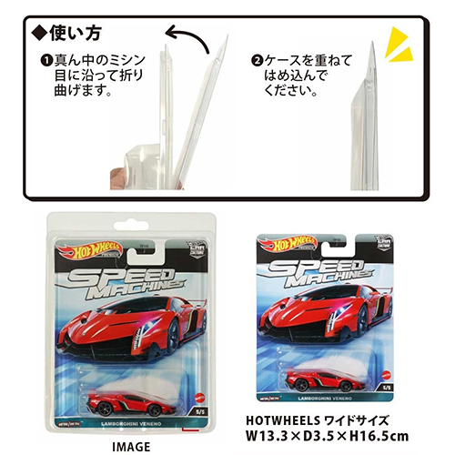 大切なホットウィールコレクションをパッケージごとブリスターケースに収める事が出来き、台紙の曲がり防止やブリスター割れ防止に効果的!こちらは劇中車など専用バックカードになっているホットウィールワイドサイズに対応で1セット10枚入り。