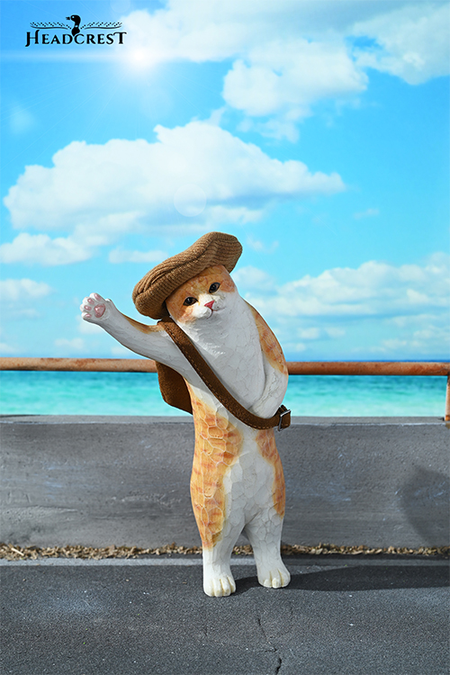 木彫り調動物スタチューシリーズで人気のヘッドクレストから登場となるNEWアイテムは…ネコ!「よぉ!元気でやってる?」なんて聞こえてきそうな、微笑ましすぎる帽子とバッグを身に着けた木彫り調のネコ。これぞ癒しのアイテム。