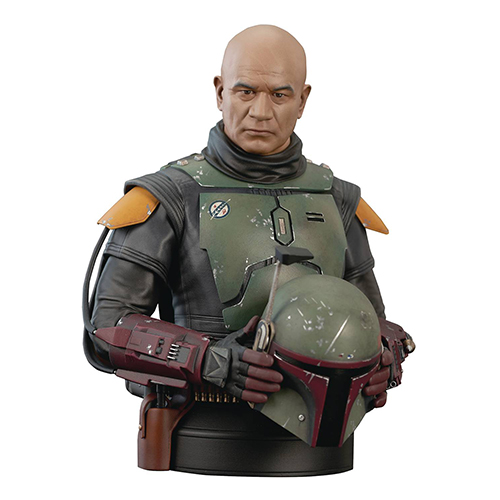 映画『スター・ウォーズ エピソード6/ジェダイの帰還』後のバウンティハンター、ボバ・フェットを描いたドラマ『ボバ・フェット/The Book of Boba Fett』より、テムエラ・モリソン演じるボバ・フェットがジェントルジャイアント造形により1/6スケールでバスト化。アンマスクドver.としてその素顔も楽しめるアイテムで、手にはヘルメットを持っているので、ちょっぴりお得な気分です。