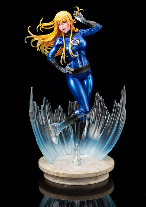 ついに15周年を迎えたBISHOUJOシリーズ!この節目に合わせて、1/6スケール・全高約30cmを超えるUltimateなBISHOUJOが登場です。記念アイテムに選ばれたのは、MARVEL初のヒーローチームの一員でもあるインビジブルウーマン。風になびく金色の髪の毛は美しいクリア素材にパール塗装を組み合わせることで透明感と軽やかさを演出。瞳の虹彩、口の中など、大型スケールならではの密度感を実現し、コスチュームは光沢部分と梨地部分の素材感の差や、細かなシワの表現も見どころです。