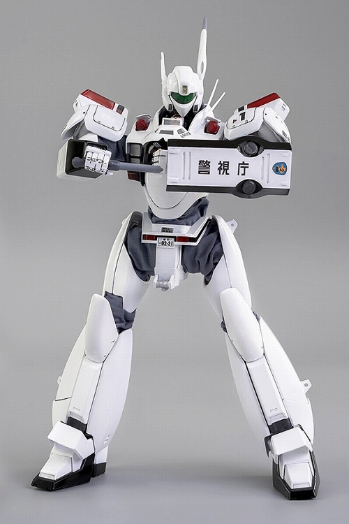 threezeroの新シリーズとしてスタートする「ロボ道」第一弾、長年人気を誇っているアニメシリーズ『機動警察パトレイバー』よりイングラム1号機が登場です!亜鉛ダイキャスト製フレームの採用により50ヶ所近い可動ポイントを実現した、1/35スケール(全高約23cm)の可動フィギュアとして完成した「AV-98」。パーツにより素材を変えるマルチマテリアル仕様で、可動域にはウェザリング塗装した布カバーを使い、イングラムのシルエットを再現しています。襟の両脇のパトランプカバーや、右ふくらはぎのサイドカバーが開閉可能、右ふくらはぎの中にはハンドリボルバーカノンを収納可能とギミック満載。また劇中と同じく、伸縮ギミックでハンドリボルバーカノンを手にするシーンの再現も可能です。コクピットカバーは開閉可能で、内部コクピットシートには泉野明フィギュアが搭乗可能。シートは昇降式、イングラムの首元から覗かせる際には防弾フロントガラスが展開可能です。両肩のパトランプにはそれぞれ、交互に点滅発光する赤と黄色の2色のLEDを搭載。ハンドリボルバーカノン、スタンスティック2種、ライアットガン、そしてスタンスティックが収納可能な左前腕部用シールド、差し替えハンドパーツ、フェイスガードが上がったヘッドパーツ、「ロボ道」共通アクションスタンドも付属。