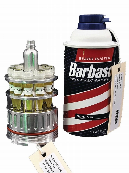 絶滅したはずの恐竜が再び大地を闊歩し、その牙や爪を人類に向ける。そんな名作『ジュラシック・パーク』シリーズ。パーク崩壊の引き金となった人物、ネドリーが使用した髭剃り用のクリーム「バーバソル・シェービング・クリーム」。そのレプリカがパラゴンFXグループから登場します。恐竜の胚を持ち出す為の偽装工作も再現され、手にした時の気分はまるで産業スパイ。撮影用オリジナルプロップを徹底検証し、遠心分離管ラベルの詳細やアーカイブに保管されている際の管理タグまで忠実に再現!遠心分離機ラックなど素材に金属を採用し、質感まで本物さながら。ラベル付き遠心分離管のレプリカ(10本)も付属します。「バーバソル・シェービング・クリーム」は実在する市販商品ですが、現在は缶のデザインも変更。「映画のこのデザイン」としてはもう手に入れることが難しいのです。そのため2重の意味で、ファンならば見逃せないアイテムとなりました。開封後に、はしゃいで泥に落とさないように注意が必要です。
