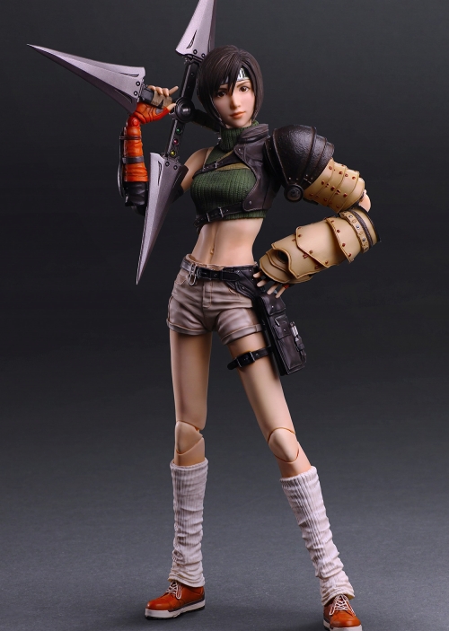 スクウェアエニックスの可動フィギュアシリーズ「PLAY ARTS改」から、『FINAL FANTASY VII REBIRTH』版のユフィ・キサラギがバージョン2でラインナップです!ウータイの特殊技能集団「シノビ」の一人、ユフィ・キサラギを新たな姿に。額の鉢巻、緑のセーター、左肩のアーマーなど、オリジナルのFF7でもおなじみの姿が、より繊細に、リアリティにこだわって表現されました。また、新造形となるフェイスパーツは、通常顔と、迫力あるバトル顔の2種が用意され、付属する各種交換手と、巨大な手裏剣がついて、原作の様々なシーンが再現可能です。