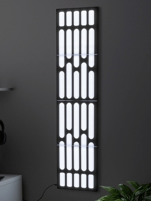 『バットマン』のバットウィング、『スターウォーズ』からミレニアムファルコン&TIEファイターをポーザブルデスクライト化してきたパラドーン。新作ライトのサイズが一気に大型化!?『スターウォーズ』オリジナルトリロジーで、スターデストロイヤーと共に「悪の枢軸」的立ち位置のデススター。その内部の印象的な壁を、パネルライトとして再現しました。全高約122センチ、スケールは約1/2と半分ながら存在感あるサイズ。発光するライトはカラーチェンジが可能で、白ライトから赤ライトに変更がリモコンで簡単操作。さらに音楽に反応してライティングが変わるなどの機能も内蔵されています。ライトはON/OFFと3段階の明るさ設定、そしてオートオフも設定可能。組み立て式で、4つのパーツからコネクターで固定します。給電はUSBケーブルなのでとても簡単、『スターウォーズ』の、あの憧れた世界観が眼前によみがえります。
