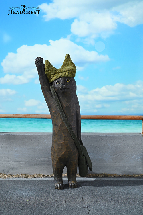 木彫り調動物スタチューシリーズで人気のヘッドクレストから登場となるNEWアイテムは…帽子をかぶったネコ!「よぉ!みんな!!元気でやってる?最近耳もすっぽりの帽子手に入れたんだー」なんて聞こえてきそうな、微笑ましすぎる耳すっぽり帽子をかぶった木彫り調のネコ。これぞ癒しのアイテム。