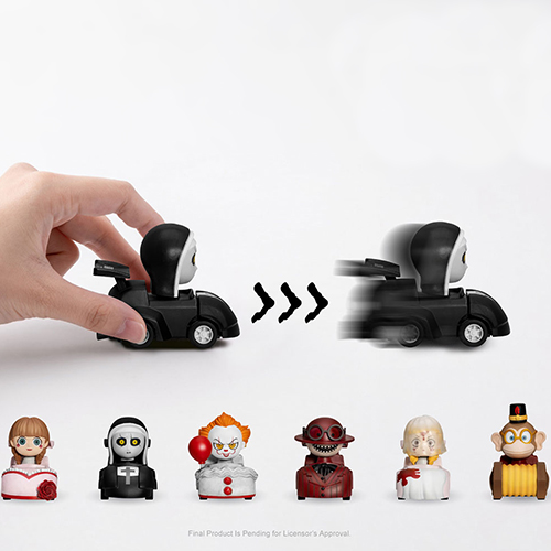 台湾のメーカー、ビースト・キングダムがお贈りする「プルバックカー」シリーズに、ワーナーホラーから6種がセットとなって登場!ワーナー・ブラザースのホラー映画に登場する人気キャラクターたちをキュートにデフォルメして、それぞれ全高約5cmのプルバックカーとして立体化!プルバックカーはゼンマイ仕掛けで、後ろに引くと前に走り出すギミック付き。ラインナップは、『IT/イット』シリーズよりペニーワイズ、『死霊館』ユニバースよりアナベル、ヴァラク、クルックドマン(へそ曲がり男)、ラ・ヨローナ(泣く女)、アコーディオンモンキーの全6種。さらにヴァラクのスペシャル・エディションが存在し通常版の代わりに入っているかも!