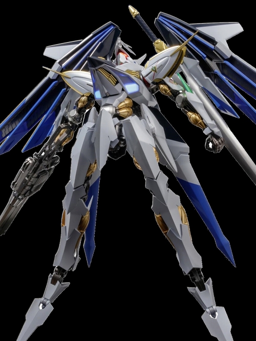 千値練「RIOBOT」シリーズに、2024年に10周年を迎える『クロスアンジュ 天使と竜の輪舞』から「ヴィルキス」がラインナップです!アンジュのパラメイル「ヴィルキス」を、駆逐形態のウイング上部までを全高約26センチで再現。ABS、ダイキャストを使用したシャープ感と堅牢感、そしてパールやメタリック等を採用したフル彩色仕様による重厚感。この美しい機体フォルムに加え、飛翔形態から駆逐形態の変形ギミックも!なんと背部ウィング展開ギミックまで差し替え無しで可能です。飛翔形態に搭乗可能なアンジュの彩色済みミニフィギュア付属。豊富なオプションパーツなど、決定版クオリティのヴィルキスがここに覚醒です!