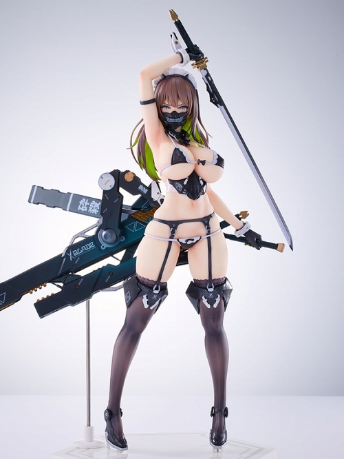 人気イラストレーターの「Nidy-2D-」氏がデザインするオリジナルシリーズ『冥途武装』。「冥途武装:Blade」がスカイチューブより1/7スケールとなって立体化!メリハリのあるグラマラスなボディがとっても魅力的……。武器やアーマー部分も細かい造形や質感にこだわり、美麗な原画のままに再現しています。別表情パーツが付け替え可能!DX Ver.ではキャストオフ仕様のボディパーツも差替え可能です。魅惑的なメイド「冥途武装:Blade」を是非、お手元にお迎えください!