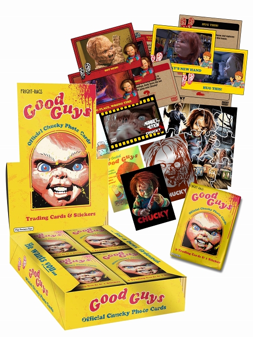 ホラーファンが思わず唸るアパレルブランド「フライト・ラグス」彼らのとめどないホラーへの愛はアパレルにとどまらず、ホラーカルチャーそのものにも波及。映画内の名場面を切り取ったトレーディングカードをリリースするにいたりました。こちらはドラマシリーズも話題で、シリーズ35周年を迎えた『チャイルド・プレイ』の、24パック入りボックスセット。チャッキーのはしゃぎっぷりをご堪能あれ。(BOXの場合、ベースカード77種は揃います。その他レアカードも封入されている可能性もございます。おたのしみに!)
