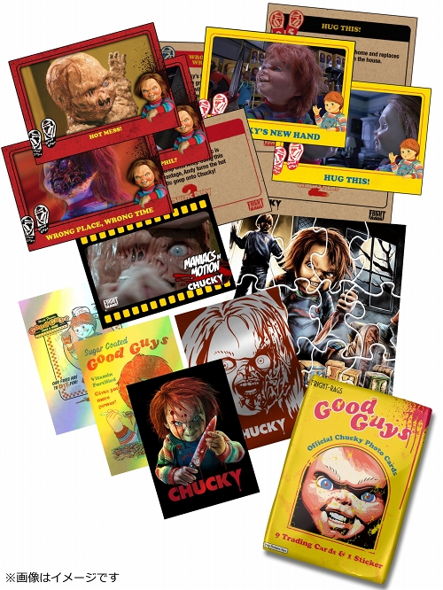 ホラーファンが思わず唸るアパレルブランド「フライト・ラグス」彼らのとめどないホラーへの愛はアパレルにとどまらず、ホラーカルチャーそのものにも波及。映画内の名場面を切り取ったトレーディングカードをリリースするにいたりました。こちらはドラマシリーズも話題で、シリーズ35周年を迎えた『チャイルド・プレイ』の、1パック単品販売です。チャッキーのはしゃぎっぷりをご堪能あれ。