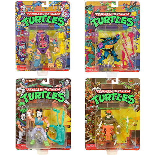 80年代後半に作られ、ここ日本では90年代に放送され多くのタートルズファンを生み出したアニメ版『ミュータント・タートルズ』のアクションフィギュアが時を越え、オリジナル同様のプレイメイツ社によって現代に復活!こちらはラット・キング、ケイシー・ジョーンズ、スラッシュ、ミュータジェンマンの4種セット。プレイメイツのタートルズフィギュアらしいゴロッとした雰囲気や、ブリスターパックのデザインもノスタルジーを感じさせる仕様になっておりたまりません!