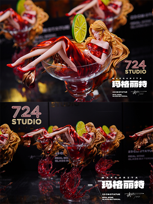 724 Studioオリジナルデザインとなる1/8スケールスタチュー企画「千杯少女」シリーズ。赤いドレスを纏い、杯の中で静かに眠る少女「マルゲリータ」。華のある芸術性の高いエレガントなデザインをグラスを用いて立体化されたアーティスティックなアイテム。