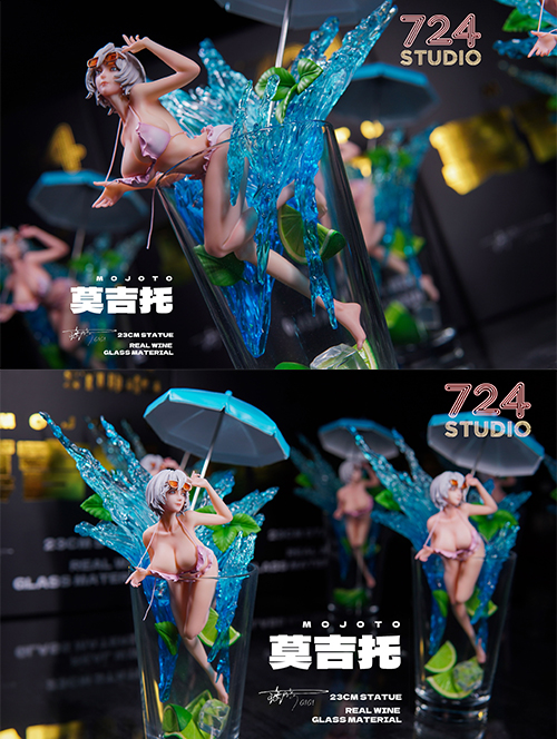 724 Studioオリジナルデザインとなる1/8スケールスタチュー企画「千杯少女」シリーズ。可愛いビキニを着て、ミントのようにフレッシュな気分をもたらす活発な少女「モヒート」。健康的で芸術性の高いエレガントなデザインをグラスを用いて立体化されたアーティスティックなアイテム。