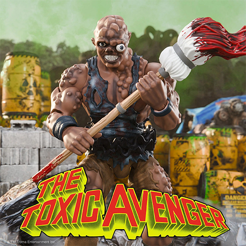 アニメ作品『悪魔の毒々モンスター 毒々あにめいしょん』のプレイメイツフィギュアにリスペクトを捧げたアイテムから始まり、アニメ準拠のアイテム、そして満を持しての登場となるスーパー7による、実写映画版『悪魔の毒々モンスター』のトキシーアルティメイトフィギュア降臨!渋めのカラーリングがまたたまりません!血に染まったモップにたなびく星条旗。君こそアメリカンヒーローだ!