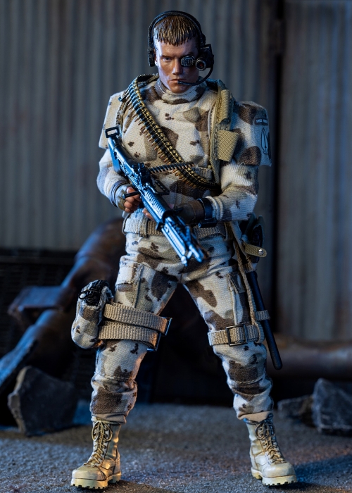 全高約12センチ級となる1/18スケールながら、細部まで再現された造型とペイントで人気だった上海ハイヤトイズの「エクスクイジットミニシリーズ」。今度は1/18から1/12にスケールアップした「エクスクイジットスーパーシリーズ」をスタートさせます。『ユニバーサルソルジャー』からアンドリュー・スコットがラインナップ!ドルフ・ラングレンが演じたスコットには差し替え頭部が2種(計3種)が付属し、お好みで差し替えが可能。若き日のドルフ、やはりイケメン。デザートイーグル、M60、MP5K-SMGなどの武器の他、印象的なヘッドセットなどアクセサリー多数で、劇中シーンでのディスプレイが楽しめます。