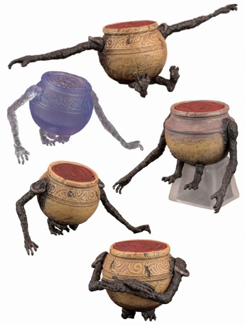 フロム・ソフトウェアの大人気タイトル『ELDEN RING』より、小壺にフォーカスしたトレーディングフィギュアが登場です。作中に登場する蓋を嵌めた壺のキャラクター「小壺」、作中のその小壺たちの様々なポージングをミニフィギュア化しています。それぞれの説明が書かれたカードが1枚も付属。ラインナップは小壺、生きている小壺3種(腕組み、歩き、はしゃぎ)、特攻野郎たちの遺灰の5種。1箱で5種が揃う、コンプリートボックスタイプです…が、ラッキーアイテム「勇者の肉塊」の存在も!?