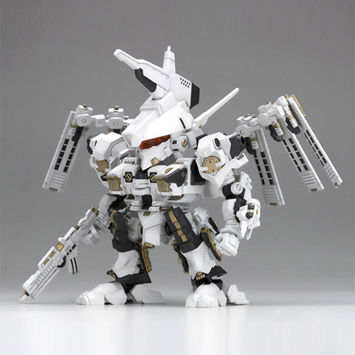 様々なメカを小さく可愛くアレンジし、商品化するコトブキヤのプラキットシリーズ「D-スタイル」から、ローゼンタールの象徴機『アーマード・コア4』『アーマード・コア フォー アンサー』両タイトルに登場した人気機体「ノブリス・オブリージュ」の再生産が決定!最大の特徴である背部武器のレーザーキャノン「EC-O307AB」は差替えで展開可能。 また、レーザーブレード「EB-O305」と、アサルトライフルが「MR-R100R」「MR-R102」の2種類が付属するので、アーマード・コア4版とアーマード・コア フォー アンサー版の両方の姿を再現出来ます。 頭部バイザー内のカメラアイはモールドで再現、ハイ・ディテールでありながらもパーツ数を抑えた組みやすい設計です。アーマード・コアの醍醐味である機体の「組み替えギミック」も再現されており、別売りの機体と各パーツ、武器のアセンブルが可能です。 こちらは、一部塗装済みマルチカラーキットとなります。