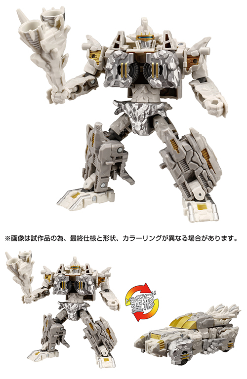 トランスフォーマー40周年を記念して、全ユニバースから人気のキャラクターが結集、展開する新シリーズ「トランスフォーマーレガシー ユナイテッド」から、岩石のような外観のトランスフォーマ―で、ロボットからオフロードカーに変形するニュークリオスが登場。"白き宝石"とも呼ばれるその白石のボディはダイヤモンドにも勝るとも劣らない強度を有し、その自らを分離変形させるアーマーライザーシステムにより、頑強な最強の武器や防具としてあらゆる攻撃を防ぐ事が可能なキャラクター。分離した武器類は、別売りのトランスフォーマ―レガシーシリーズに装着する事が可能。