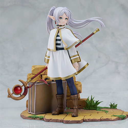 大人気アニメ『葬送のフリーレン』より、魔法使い「フリーレン」を作品の世界観を落とし込んだヴィネット調でフィギュア化。これまでの旅を振り返るように…または大切な誰かを想うように…凛としつつもどこか儚げな黄昏姿を情景たっぷりに表現。フリーレン本体の再現度はもちろん、愛用の「トランク」や「杖」には連れ添った年月のリアルな質感を、左手薬指の「鏡蓮華の指輪」は意匠を繊細に再現されています。