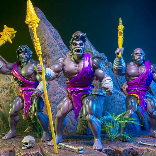 あらゆる世界と次元をつなぐ古の秘密の井戸をポータルにして、ドラゴノア城から各次元に散らばった「力の神鎧」を探す冒険が今広がる…。「トランスフォーマー」や「マスターズ・オブ・ザ・ユニバース」のアイテムでコンセプトアートなどにも関わったデザイナー、エミリアーノ・サンタルシア氏によって生み出された「レジェンド・オブ・ドラゴノア」シリーズ。こちらは、オスクロの邪悪な魔法により手下にされている、謎に包まれた太古の世界からやってきた獰猛なケイヴマンの3種セット。