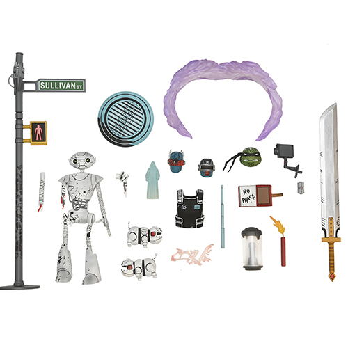 ネカによるタートルズを生み出したイーストマン&レアードが構想した、幻のタートルズコミックス最終章『ミュータントタートルズ ラスト・ローニン』シリーズから、コレクションの世界観をさらに広げてくれるアクセサリーセットが登場!実際にマンハッタンに存在する「Bleecker」と「Sullivan Street」の標識や、以前リリースされたストリートジオラマに付けられるセキュリティーカメラ、ローニンやパトロールボットの交換ヘッド、他にもヒロト・オロクのホログラムなどなど魅力的なアイテムが詰まっています!