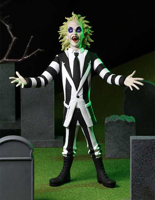 数々のホラーアイコンにUSサタデーモーニングのカートゥーンのエッセンスを加え人気が高まるネカの「トゥーニーテラーズ」に、名前を3回唱えれば、死後の世界から現れるバイオ・エクソシスト「ビートルジュース」が仲間入り!シリーズお馴染みのバックカード裏面の背景デザインもお楽しみに!36年ぶりの続編も控え続投するマイケル・キートンファンの皆様もぜひご注目を。