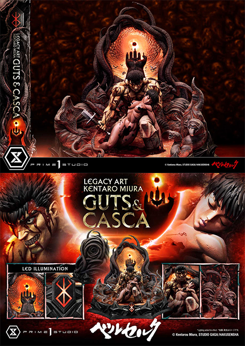 不世出の漫画家が残したアートワークを立体化する、新フォーマット「レガシーアート"三浦 建太郎"」にて、コミック13巻のカバーで描かれたガッツとキャスカを1/4スケール、全高約72cmに及ぶ迫力の立体化!
