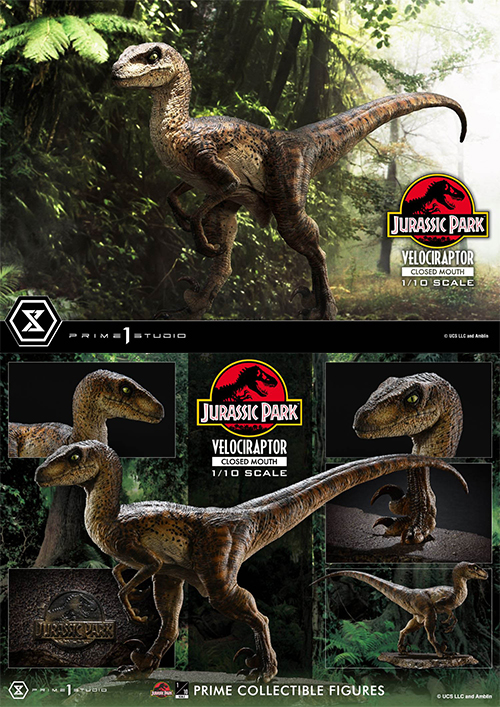映画『ジュラシック・パーク』より、躍動感あふれる「ジャンプ」、鋭い牙を覗かせる「オープンマウス」に続き、牙を隠して獲物を狙うラプトル「ヴェロキラプトル クローズマウス」がプライムコレクタブルフィギュアに登場!赤茶の体表に黒い縞模様と斑点、高い殺傷能力を誇る鉤爪、残忍な光を宿す黄色い瞳。長い尾を伸ばして闊歩する姿を、各部の造形・塗装にこだわり再現。恐竜界随一の知性と俊敏性を誇る小型肉食恐竜、その特徴を存分に堪能できるアイテム。
