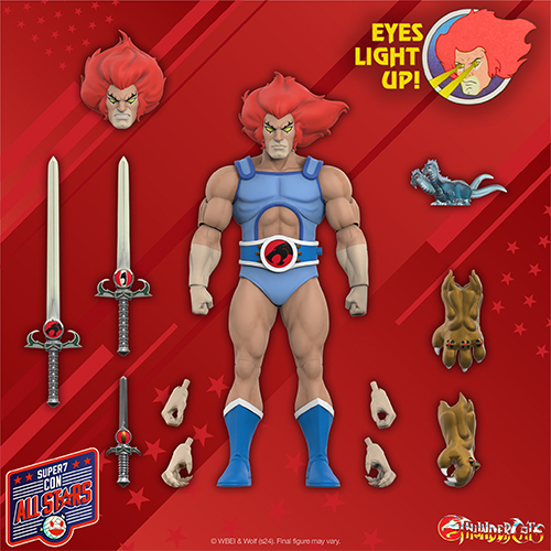 1985年から88年にかけて4シーズン放送され本国アメリカでは未だ高い人気を誇る『サンダーキャッツ』から、死にゆく惑星サンダーラから逃れ第三の地球を舞台に冒険を繰り広げるヒューマノイドエイリアン、サンダーキャッツのリーダー、ライオンオーが「Sight-Beyond-Sight」の能力を再現したLEDアイを搭載し、新たにスーパー7のアルティメイトシリーズから登場です。他にも豊富なアクセサリーも魅力的なファン待望のアイテム。