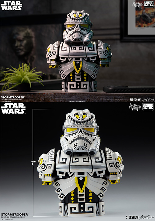 ワーナー、ローリングストーン誌などにもアートを提供した古代先住民族とグラフィティを掛け合わせたアートでファンを魅了するアーティスト、ジェシー・ヘルナンデスによって、トルーパー要素と古代美学が融合!オリエンタルなディテールに歴史的なアート、スターウォーズレガシーへのリスペクトを込めたストームトルーパーのバストアップが誕生です!