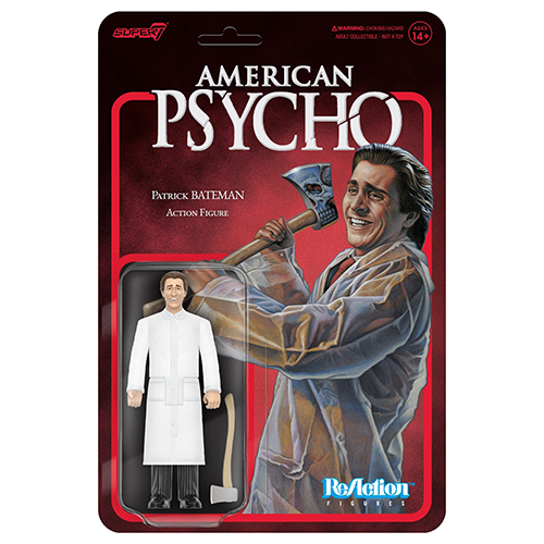 ブレット・イーストン・エリスの小説をもとに、メアリー・ハロンが映画化した『アメリカン・サイコ』。その映画でクリスチャン・ベールが演じた主人公パトリック・ベイトマンが満を持してスーパー7の贈るリアクションシリーズに登場です。テラードスーツにレインコート、斧を持った衝動を抑えきれない男のその姿をぜひご堪能ください!バックカードのイラストも素敵ですが、バックカード裏面のスーパー7らしい遊び心が100点満点!