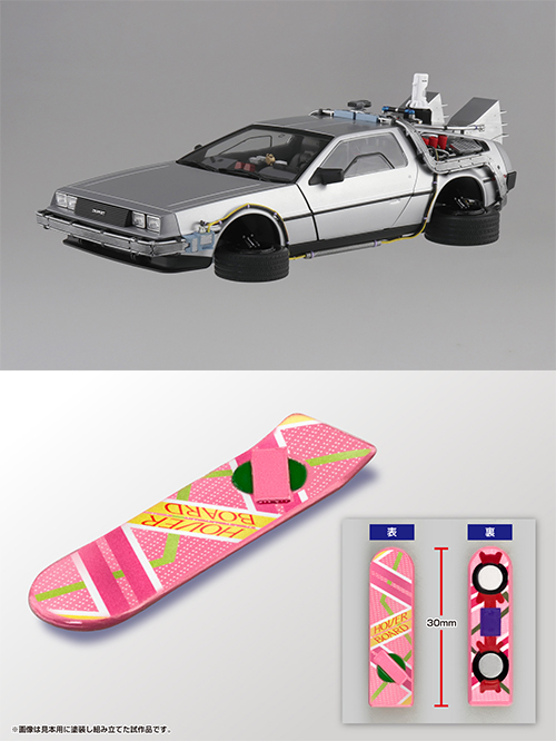 世界を席巻したSF大ヒット映画『バック・トゥ・ザ・フューチャー』続編となる『バック・トゥ・ザ・フューチャー PartⅡ』でも大活躍をみせてくれた、あの夢の空飛ぶタイムマシン「デロリアン」が、アオシマから1/24スケールのプラモデルキットで登場!金型を大幅に追加し2015年の空を舞うデロリアンを精密に再現。専用パーツを使用し飛行形態を再現することももちろん可能。2作目のデロリアンの特徴の一つ、家庭用原子炉「ミスター・フュージョン」やガルウィングの開閉、さらに同スケールのホバーボードも付属!