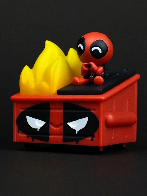 デザイナーズフィギュア界に新星のごとく登場した、ゴミ箱フィギュア「Dumpster fire」。「大惨事」の意に取られるこのダンプスターファイアという英単語を具現化。そんな「100%ソフト」のかわいいソフビフィギュアシリーズに新作ラインナップです!いろんな意味で「炎上」するゴミ箱ちゃん、なんだからカラーリングが赤と黒に…上に座っているのは…俺ちゃんデッドプールだ!さすがデップー、「炎上(比較的良い意味の方)」とは切り離せないばかりか、一緒に燃えてしまうってわけか!ゴミ箱ちゃんもすっかりデッドプールのロゴに塗り替えられうれし泣き(本当か?)