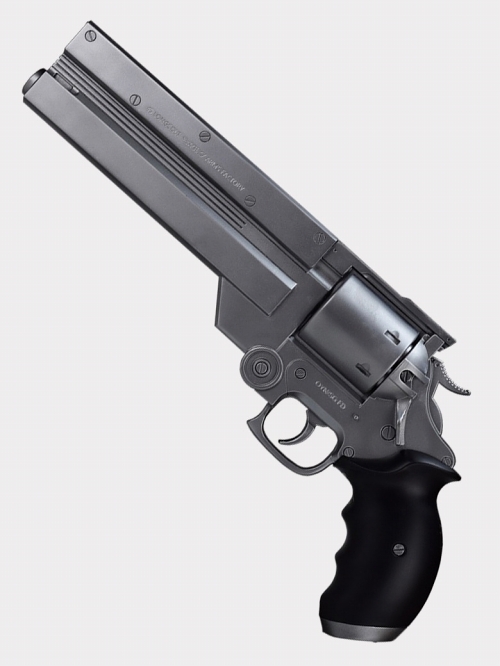 いまだに海外でも絶大な人気を誇る、内藤泰弘氏によるサイバーSFウエスタン作品『トライガン』。超絶ガンテクの持ち主で「600億$$(ダブドル)」の賞金首でありながら不殺を貫く、主人公 ヴァッシュ・ザ・スタンピード。その彼が愛用するリボルバーがウォーターガン(水鉄砲)として登場します。今回は1998年のマッドハウス版『TRIGUN』から、ヴァッシュの銃をセレクト。4話以降から登場する通称「ヴァッシュの銃」は、シリンダーにフロート形状が無い大型のリボルヴァー式拳銃。TV版は2018年発売の劇場版にはない、銃身フレーム左側面に45口径の刻印を追加しています。
