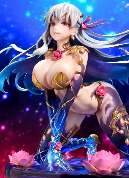 大人気スマホゲーム『Fate Grand Order』より、アサシンーのサーヴァント「カーマ」が最終再臨の姿でPVC化です。魅惑的なボディ、扇情的なポージング、こちらに向ける艶やかな微笑みは、まさに見ている人間を堕落させる魔王。肢体の鮮やかなカラーリングがクリアパーツに映え、体内から燃えているような表現になりました。印象的な白髪は濃淡あるグラデーション表現とパール塗装で存在感があり、内側は鮮やかな宇宙で幻想的。煌びやかな装飾やどこかで見た事のある少女を彷彿とさせるリボンなど、繊細な造形も見所な仕上がり!さらに、本体と台座は取り外し可能となっているため、自由自在に飾って色んな角度から眺めてお楽しみいただけます!また、台座底面電飾(別売)を仕込むことで、より忠実に最終再臨イラストへ近づけることも可能です!