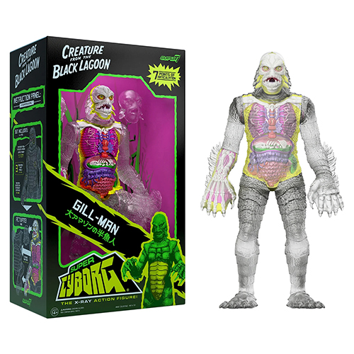 前回まさかの"怪獣解剖図鑑"的アプローチで度肝を抜いた、ユニバーサルモンスターズの中でも人気キャラクターの一人ギルマンのスーパーサイボーグフィギュア。顔、胴体、片手のパネルを取り外し、中をしっかりと担当可能。さらに今回はクリアver.なので、表皮をつけた状態でも中身が透けてカッコよさが高まります!実は前回と中身のカラーリングも異なっており、スーパー7らしい憎い演出が光ります!