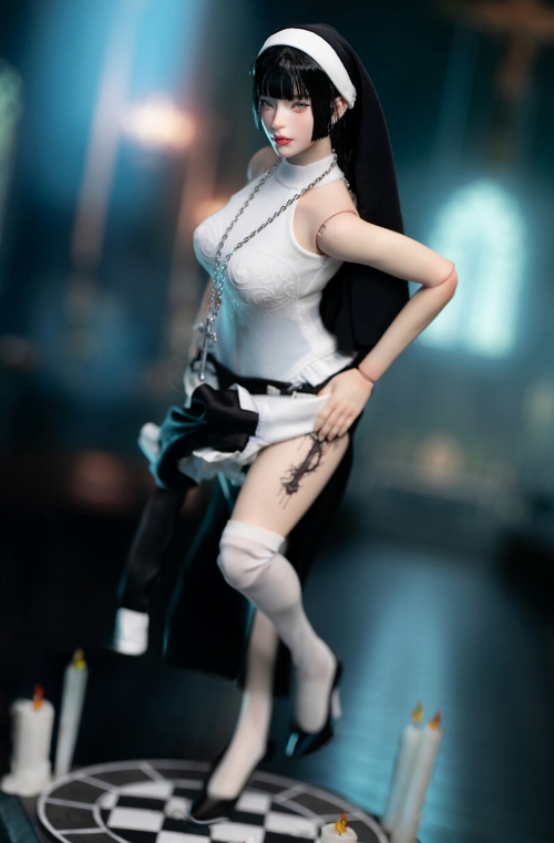 龍山重工/ロンシャンヘビーインダストリーから、「ダークシスター」ハサウェイが1/6スケールでフィギュア化です。こちらのver.Cでは白髪頭部、黒髪頭部の両方が付属されたデラックスタイプ。今回は頭部に眼球可動を内蔵したことで、簡易的な表情付けも。修道服を着用し、スリットから覗くふとももには大胆なタトゥー!大型フレームの眼鏡、十字架、差し替えハンドパーツに加え、ウィップまで付属する物騒仕様!素体は1体分ながらも、頭部2つ、ウィップ2種、キャンドルが追加降像するなど豪華な内容となりました。
