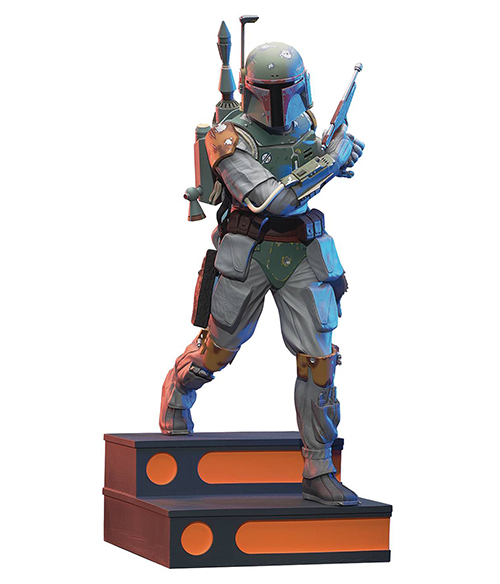ダイアモンドセレクトトイによるレジン製スタチューシリーズ「マイルストーン」から、映画『スター・ウォーズ エピソード5/帝国の逆襲』のデザインに基づいた賞金稼ぎボバ・フェットの1/7スケールスタチューが登場。こちらは、ジェントルジャイアント限定品だったアイテムで、ヘルメットやアーマーの質感などジェントル・ジャイアントらしい細やかな造形にも注目です。世界限定1000体のみ!