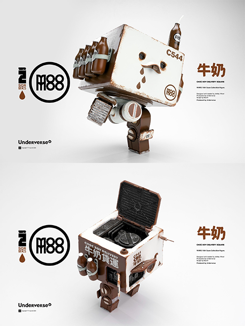 こちらはアシュレイ・ウッドのライフラークとも言える作品『ワールド・ウォー・ロボット』から、限定アイテムとして登場した「チョコボーイ デリバリー・スクエア」。全高約4.3インチ(約10cm)に8ヶ所の可動ポイントがあり、アシュレイ・ウッドのデザインを最大限に活かす、細部までこだわったデカールや、得意とするウェザリングが魅力的なデザイナーズアイテム。LEDにより目がライトアップするギミックを搭載(電池別売り:AG1×3)。