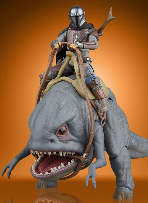 オールドケナーを意識したバックカードが採用された『スターウォーズ』ヴィンテージコレクションの3.75インチフィギュア。Disney+配信の人気ドラマ『The Mandalorian』から、「マンドー」ディン・ジャリンと、ブラーグのセットが登場です。惑星アーヴァラ7でのディン・ジャリンにはブラスター・ライフルとブラスター・ピストルが付属。セットとなっているブラーグは同じ全高約10センチながらも、圧倒的なボリュームを誇ります。手足には数ヶ所の可動、サドルと手綱も付属し、背中にディン・ジャリンを乗せることが可能です。
