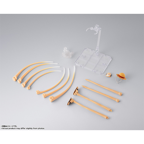 TVアニメ『ONE PIECE』より、別売りの「モンキー・D・ルフィ -冒険の夜明け-」用のオプションパーツセットが登場!伸びた腕、脚パーツはワイヤー入り仕様のため、自由なアクションが可能!「ゴムゴムの銃乱打」をイメージしたオプションパーツも付属し、遊びの幅が広がる仕様に!