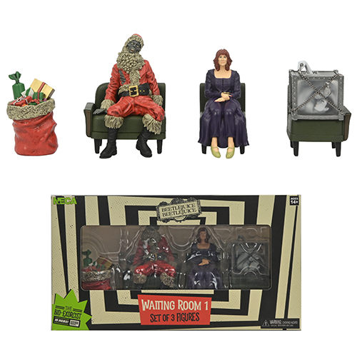 ティム・バートン監督がドラマ『ウェンズデー』のスタッフを引き連れ、新たに造り上げた映画『ビートルジュース ビートルジュース』から、印象的なシーンに登場するキャラクターたちを3インチサイズで再現したフィギュアセットがネカより登場です。こちらは「ウェイティングルームセット①」となり、デリア・ディーツ、エスケープ・アーティスト、ミイラのサンタの3種がセットになっています。