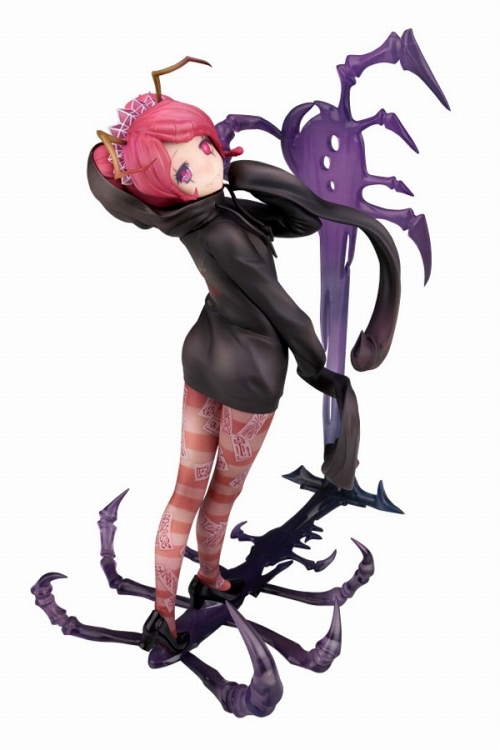 『オーバーロード』から、戦闘能力を持つメイド隊「プレアデス」の一人「エントマ・ヴァシリッサ・ゼータ」が立体化です。キャラクター原案のso-bin氏のイラストを元に、普段の装いとは異なるパーカー姿で再現しました。片目を光らせた怪しげな雰囲気を醸し出す姿が魅力的!こちらを振り向いて見上げたような可愛らしいポージングとのギャップも目を惹きます。 パーカーは袖のシルエットやシワなど丁寧に造形し、彩色のシャドウ表現も相まってゆったりとした布の質感を感じさせます。パーカーの模様や足の御札も細部まで再現され、密度ある仕上がりです。クリア素材を使用した足元の影モチーフは彼女本来の姿を彷彿とさせるデザインとなっており、ミステリアスな世界観を引き立てます。