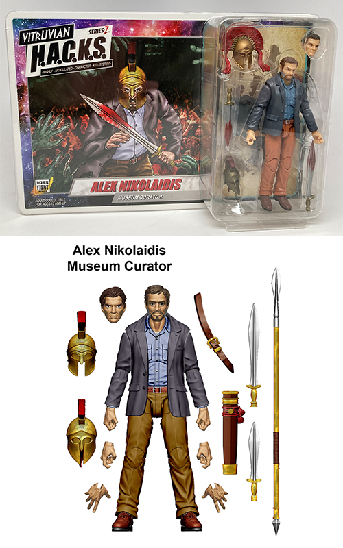 オリジナルの世界観が魅力のフィギュアを中心に展開してきたボスファイトスタジオが本格的に日本上陸!こちらはゾンビを題材とした「ウィトルウィウス H.A.C.K.S.シリーズZ」より、ギリシャのアテネにある国立古代博物館の運営を担当する教授「アレックス・ニコライディス」の4インチアクションフィギュア。展示品の兜や血塗られた剣を使いゾンビと対峙する姿を再現。頭部パーツの他にも様々な武器、ハンドパーツ、スタンドが付属。兜や剣の他に替えのヘッドパーツやスタンドが付属。