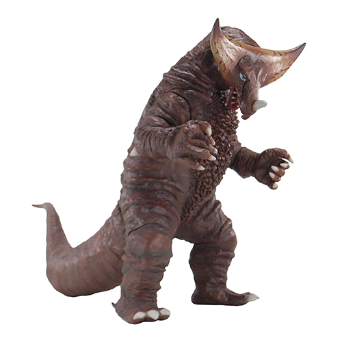 CCPの1/6特撮シリーズより、『ウルトラマン』第26話「怪獣殿下(前篇)」に登場する、古代怪獣ゴモラが、全高約28cm×全長約50cmの大ボリュームハイグレードソフビフィギュアとして登場!その特徴的なフォルムと強さから人気のゴモラを、細部のしわ、武器である長く太い尻尾や腹部の複雑なテクスチャなども見事に再現。スーツのシワやたるみを表現した細部までこだわり抜かれた原型。頭部のツノの模様や、体の影になる部分まで抜かりなく彩色されたゴモラを堪能できるアイテム。