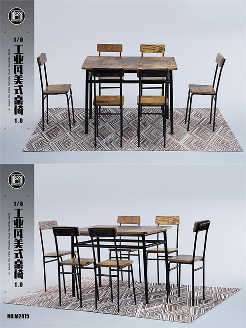 アクションフィギュアなどのディスプレイ時に使うと妄想捗るアクセサリーたち。MMMトイズから、1/6スケール用の「スアメリカン テーブル & チェア」1.0版が登場です。メタル素材などを使用ししっかりとしたアメリカンな家具を再現。テーブルに椅子が6脚付属するので、お手持ちの1/6スケールフィギュアと併せてディスプレイするとより世界観が広がります。