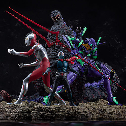 『シン・ゴジラ』『シン・エヴァンゲリオン劇場版』『シン・ウルトラマン』『シン・仮面ライダー』4作品がコラボレーションする奇跡のプロジェクト『シン・ジャパン・ヒーローズ・ユニバース』。そのメインビジュアルをグッドスマイルカンパニーがスタチュー化!日本を代表する"ヒーロー"4作品の決定版となるスタチューを開発するべく、よりすぐりの"原型師"4人と彼らをつなぐ存在"彩色師"1名を選出し、「スカルプターズ・ユニバース」で挑む珠玉のアイテム。造形、彩色共に一切の妥協なく造り上げられたヒーローたちの勇姿をご堪能ください!こちらは、『シン・ゴジラ』『シン・エヴァンゲリオン劇場版』『シン・ウルトラマン』『シン・仮面ライダー』各1体、合計4体のセットとなります。